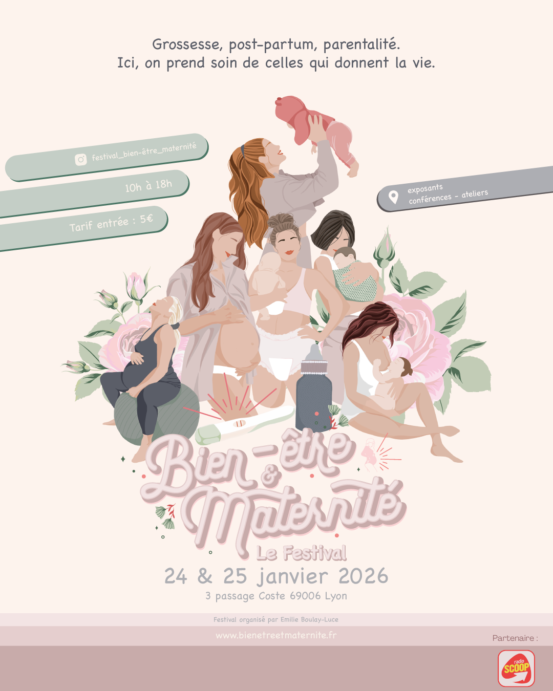 Talking about motherhood without filters, without pressure, and with lots of kindness: that’s the spirit of the Well-Being & Motherhood Festival, which is coming to Lyon on January 24th and 25th, 2026, at 3 Passage Coste (Lyon 6th). Designed for expectant mothers, new moms, co-parents, and loved ones, this gathering created by Émilie Boulay-Luce offers two days filled with information, exchange, and support. The program includes conferences on topics such as pregnancy, postpartum care, mental health, and breastfeeding, practical workshops, and an exhibition space featuring perinatal professionals and committed brands.