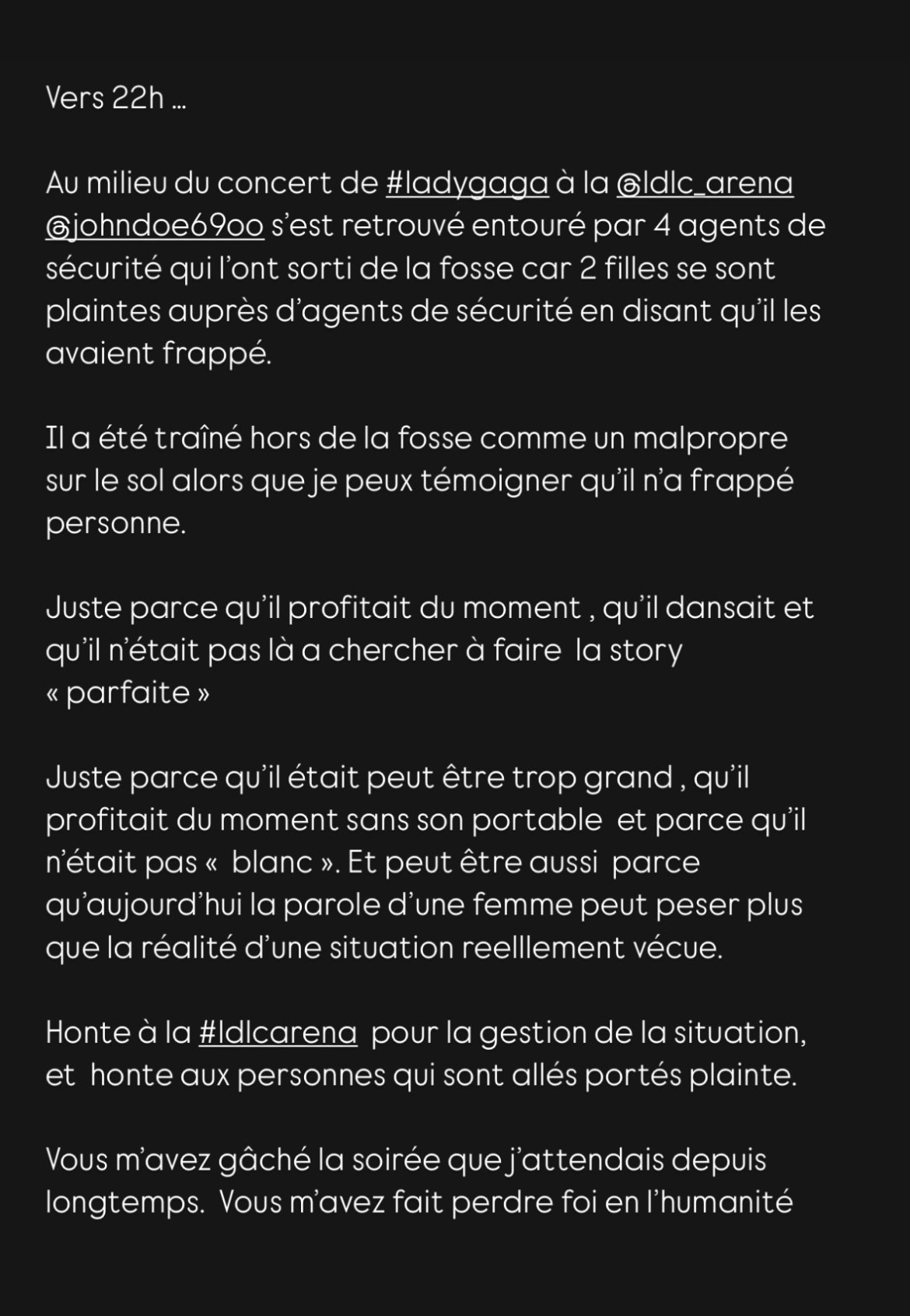 The couple is criticizing the hasty management and accuses the LDLC Arena of ruining their evening. Sylvain says he's a direct witness: there was no violence, just a guy enjoying a concert, maybe a bit too tall, maybe a bit too enthusiastic, without a phone in hand. One of his friends adds: “Just imagining L’événement hitting someone, especially a girl, is completely absurd!” The intervention, on the other hand, seems completely excessive.