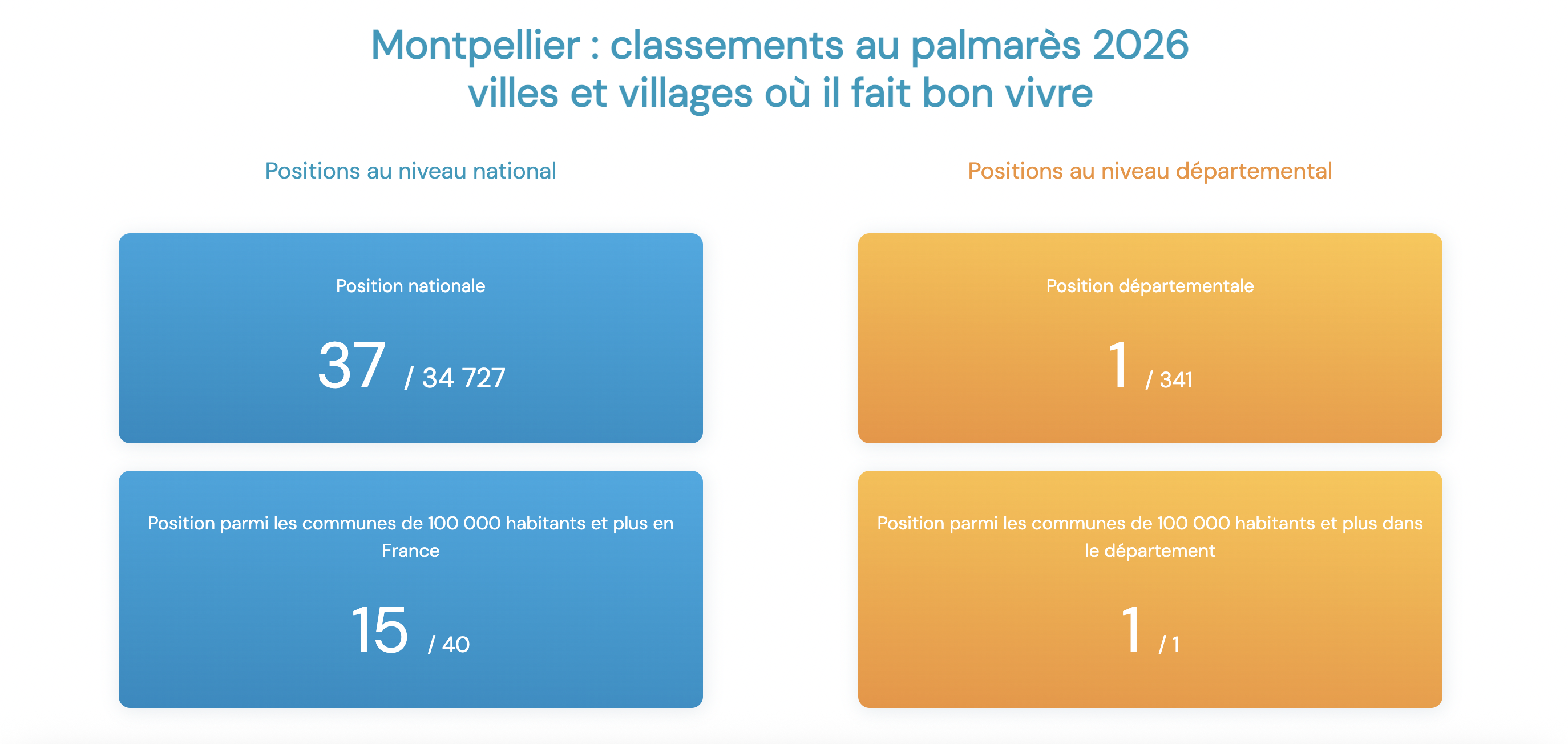 On the side of Montpellier, the situation is a bit more nuanced. In the department, it remains the most appreciated city. Among the major French cities, Montpellier is slightly outpaced, despite a nice 37th place.