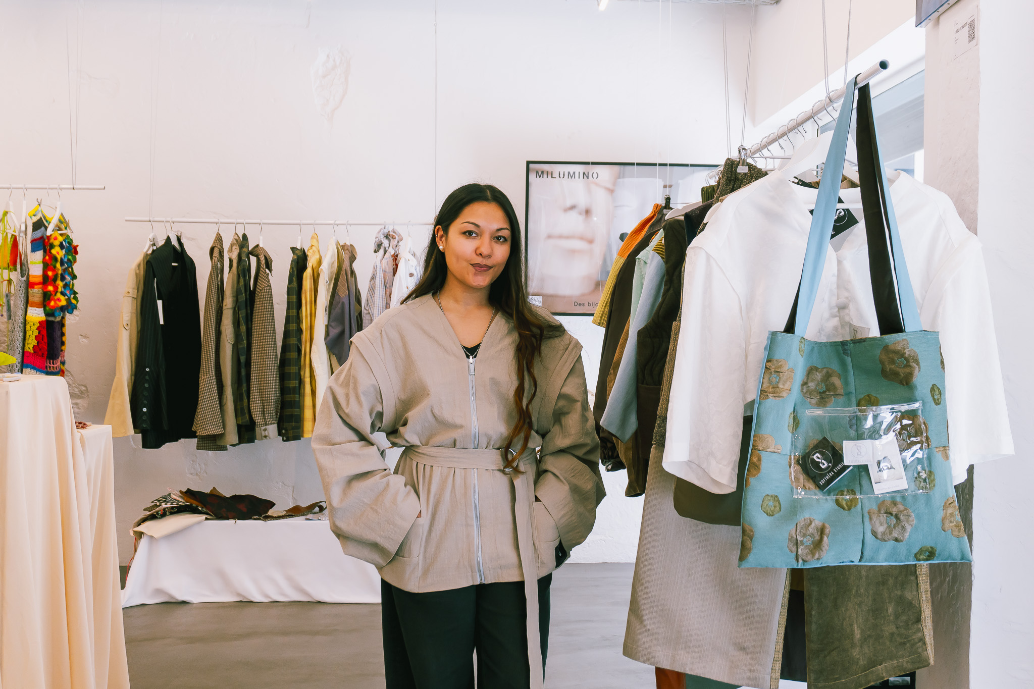 The music resonates at the Pavilion, while different artists set up their corner dedicated to their creations. In the midst of this burst of fabrics and colors, Marilyne — Mary — is busy with the final preparations, radiating a calm energy. Until April 12, 2026, she’s making herself at home on Rue du Temple to showcase the clothing from her brand, Softhéra, alongside other creative minds, as part of a pop-up themed around memory.