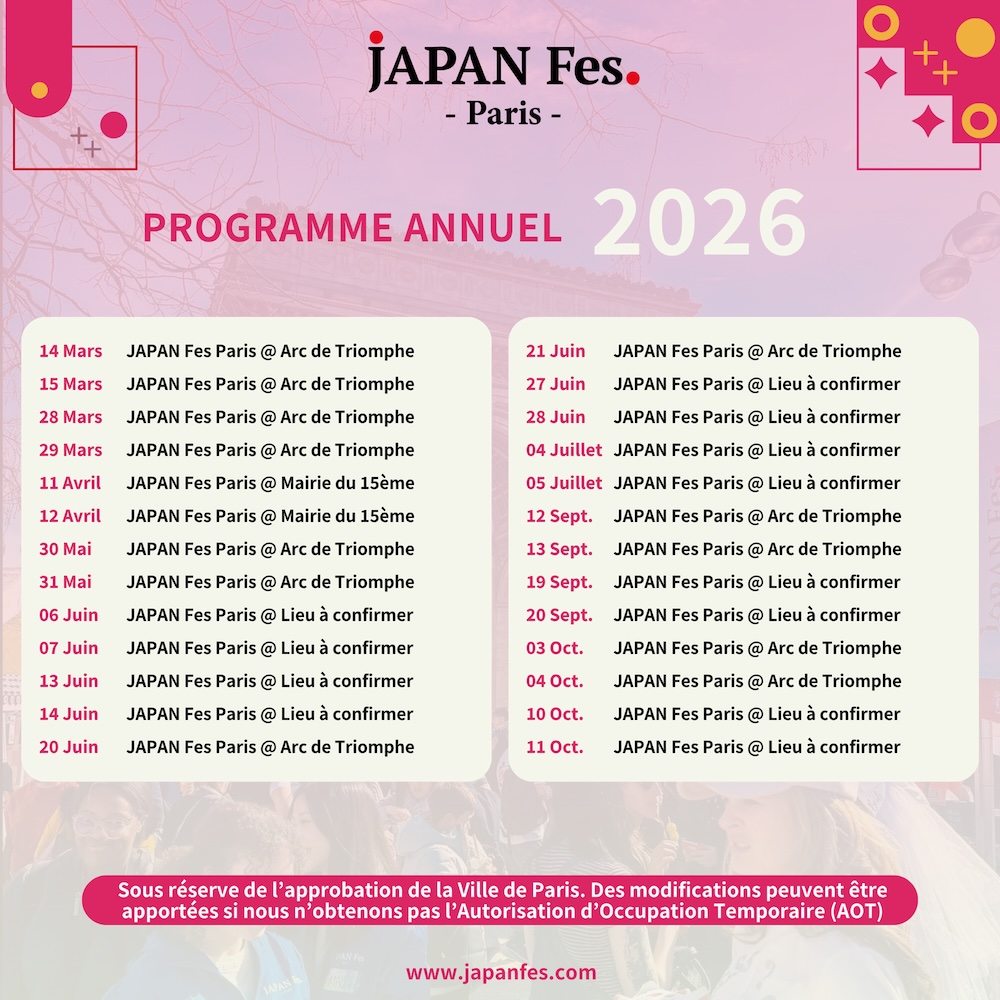 For its Paris editions, JAPAN Fes takes over various spots in the capital, especially around the Arc de Triomphe and in front of the Mairie du 15e. Throughout the day, you can stroll between the stalls, taste a plethora of specialties, and enjoy a vibe inspired by beloved Japanese festivals, where you can eat while walking... and even dance if the mood strikes you!